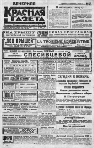 Красная газета : Вечерний вып. Изд. Петроград. совета рабочих и солдатских депутатов. — Пг., 1922-. — 63 см.