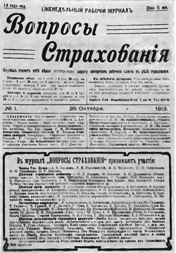 * Вопросы страхования — большевистский легальный журнал, который вырос из «Отдела страхования» газеты «Правда» (см. 1912). Выходил в Петербурге еженедельно с 26 октября (8 ноября) 1913 по 12(25) июля 1914 и с 20 февраля (5 марта) 1915 по март 1918. В годы империалистической войны — единственное легальное большевистское издание в Петербурге. Вышло всего 63 номера, тиражом 15 тыс. экз. Журнал выходил под руководством ЦК большевистской партии и вел борьбу не только за осуществление рабочего страхования, но и за большевистские «неурезанные лозунги». В журнале участвовали: В. И. Ленин, В. В. Куйбышев, И. В. Сталин, Н. М. Шверник, большевики-депутаты IV Государственной думы, уполномоченные больничных касс, рядовые рабочие.