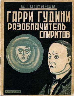 Евгений Васильевич Толкачев (1896, Москва — не ранее 1960) — журналист, издатель, сатирик, переводчик, автор одной из первых в Советском Союзе книг, имеющих непосредственное отношение к иллюзионному жанру — «Гарри Гудини — разоблачитель спиритов». Книга издана в 1927 году, на следующий год после смерти выдающегося американского фокусника и эскаписта. В работе достаточно подробно описана биография и репертуар Гарри Гудини (настоящее имя Эрих Вейс), а также история его борьбы с мракобесием, насаждаемым фокусниками-шарлатанами — спиритами и медиумами. Кроме того, автор вкратце делится своими детскими воспоминаниями о гастролях Гудини в России в 1903 году.